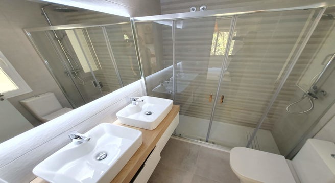 Dit appartement met twee slaapkamers en twee badkamers is instapklaar. Het heeft een moderne open keuken met bijkeuken. De lichte en ruime woonkamer biedt directe toegang tot het terras. Het uitzicht vanaf het terras is prachtig: groen, tuin en zwembad. Een stukje paradijs.